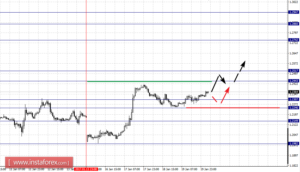 Краткосрочное нисходящее движение возможно в коридоре 1.2307 – 1.2246, пробой последнего значения приведет к углубленной коррекции, здесь цель – 1.2149, этот уровень является ключевым сопротивлением для верха.