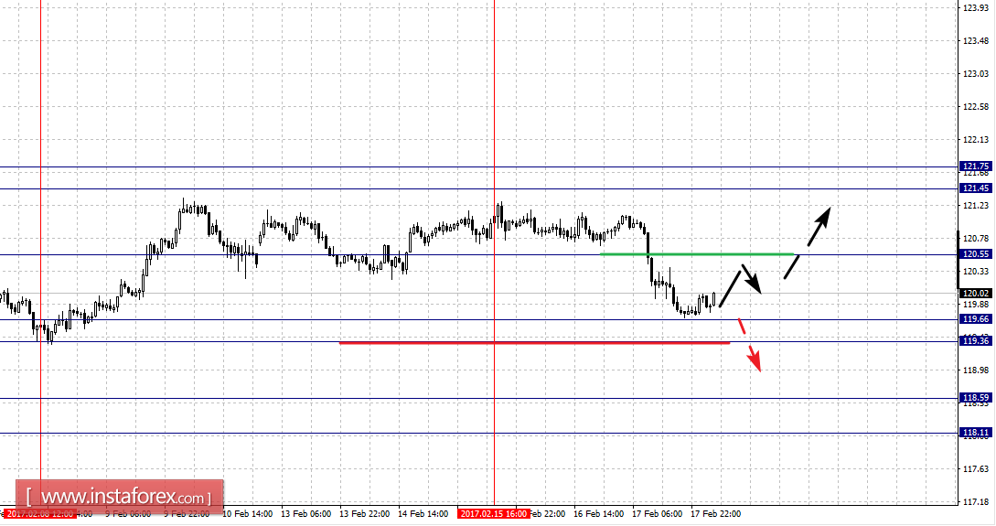 Консолидированное движение ожидаем в диапазоне 1.0617 – 1.0576, пробой последнего значения приведет к отмене восходящей структуры от 15 февраля, в данном случае первая потенциальная цель для низа – 1.0517.