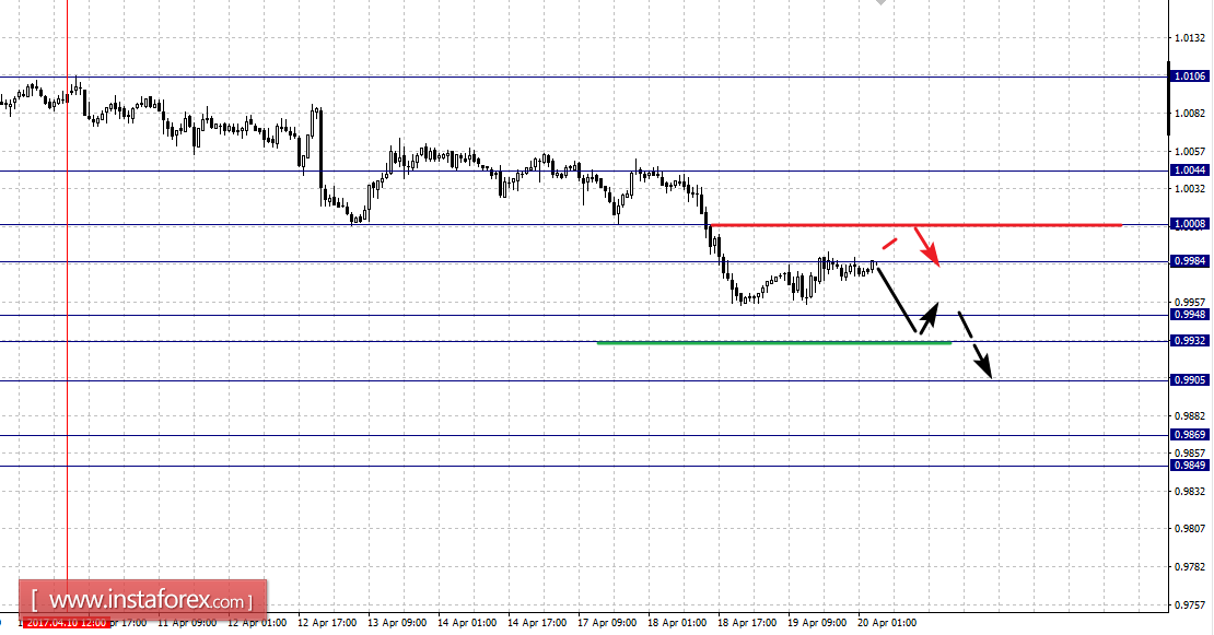 Краткосрочное восходящее движение возможно в коридоре 0.9984 – 1.0008, пробой последнего значения приведет к углубленной коррекции, здесь цель – 1.0044, этот уровень является ключевым сопротивлением для верха.