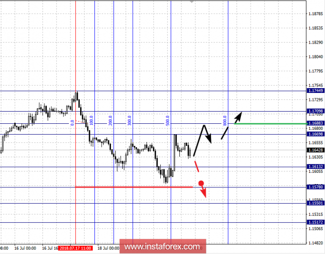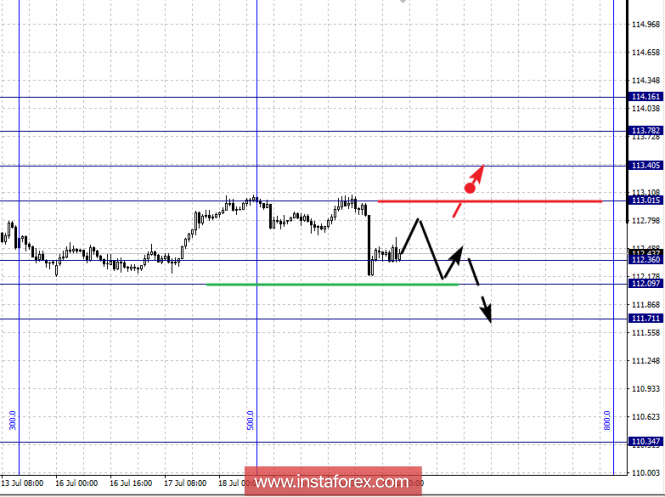 По паре Евро/Доллар существует высокая вероятность отмены нисходящей структуры от 17 июля, для чего необходим пробой 1.1688. По паре Фунт/Доллар продолжения развития нисходящей структуры от 16 июля ожидаем после пробоя 1.2990. По паре Доллар/Франк ситуация находится в равновесном состоянии, ее развязки ожидаем после 14:00. По паре Доллар/Иена цена находится в коррекции, для возобновления восходящей тенденции необходимы локальные начальные условия. По паре Евро/Иена следим за нисходящей структурой от 17 июля. По паре Фунт/Иена следим за нисходящей структурой от 16 июля, в первой половине дня ожидаем движение в коррекцию преимущественно.