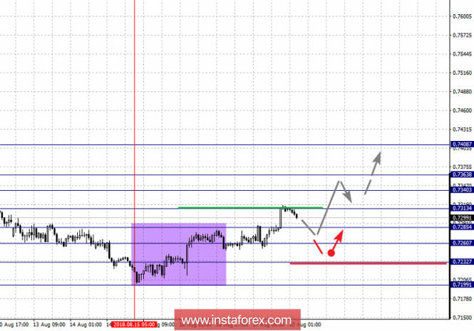Краткосрочное нисходящее движение возможно в коридоре 0.7285 – 0.7260, пробой последнего значения приведет к углубленной коррекции, здесь цель – 0.7232, этот уровень является ключевой поддержкой для восходящей структуры.