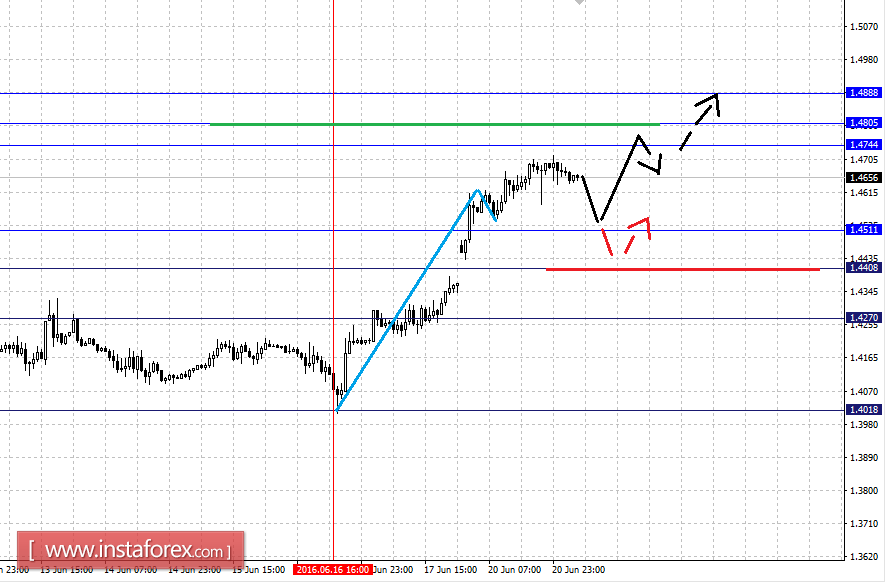 Краткосрочное нисходящее движение возможно в коридоре 1.4511 – 1.4408, отсюда высока вероятность разворота кверху. Пробой уровня 1.4405 приведет к развитию затяжной коррекции, в данном случае цель – 1.4270, этот уровень является ключевой поддержкой для верха.