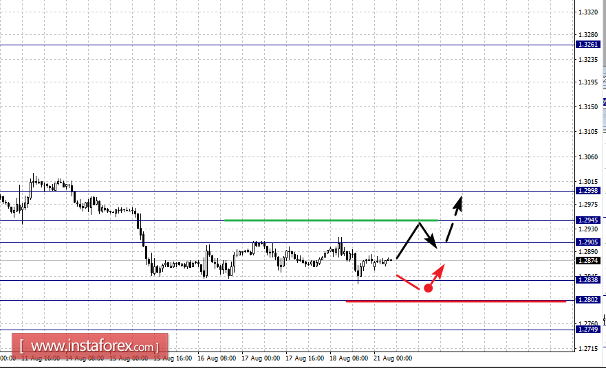 Краткосрочное восходящее движение возможно в диапазоне 1.2905 – 1.2945, пробой последнего значения приведет к углубленному движению, здесь цель – 1.2998, этот уровень является ключевой поддержкой для низа.