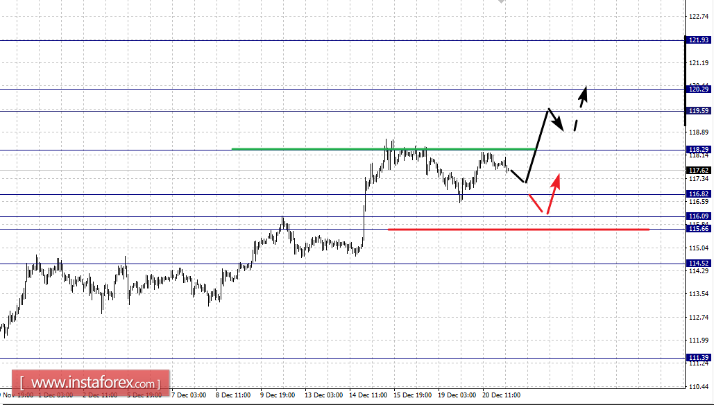По паре Евро/Доллар продолжения развития нисходящей структуры от 8 декабря ожидаем после пробоя 1.0355. По паре Фунт/Доллар следим за развитием нисходящей структуры от 6 декабря. По паре Доллар/Франк продолжения движения кверху ожидаем после пробоя 1.0340. По паре Доллар/Иена развития восходящей структуры в масштабе Н1 ожидаем после пробоя 118.30. По паре Евро/Иена развития восходящей структуры ожидаем после пробоя 123.26. По паре Фунт/Иена продолжения движения кверху ожидаем после пробоя 146.55.