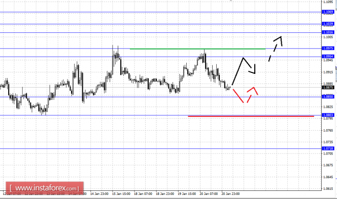 Консолидированное движение возможно в коридоре 1.0850 – 1.0803, пробой последнего значения будет располагать к развитию нисходящего движения, здесь цель – 1.0718.