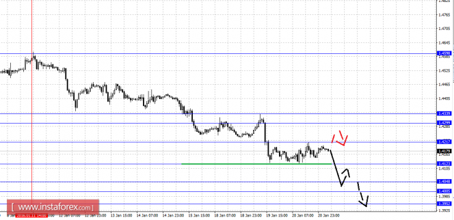 По паре Фунт/Доллар ключевыми уровнями в масштабе Н1 являются: 1.4339, 1.4299, 1.4217, 1.4123, 1.4048, 1.4005 и 1.3952. Здесь мы следим за локальной нисходящей структурой от 11 января. Продолжения движения книзу ожидаем после пробоя 1.4120, в данном случае цель – 1.4048, в коридоре 1.4048 – 1.4005 консолидация цены. Потенциальным значением для низа считаем уровень 1.3952, по достижении которого ожидаем откат в коррекцию.