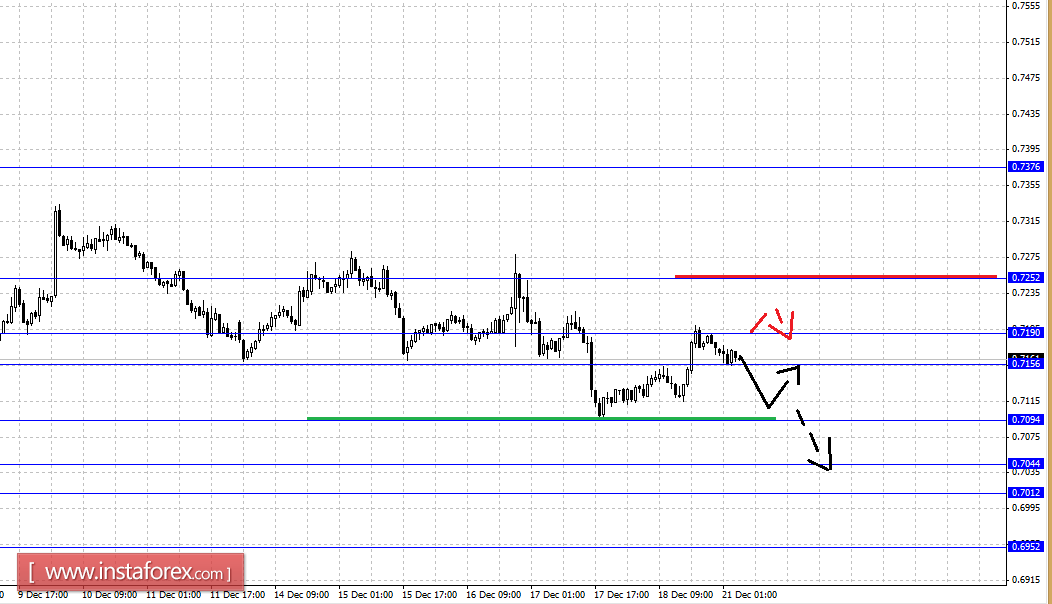 Краткосрочное восходящее движение возможно в коридоре 0.7156 – 0.7190, пробой последнего значения приведет к углубленной коррекции, здесь цель – 0.7252, этот уровень является ключевым сопротивлением для верха.