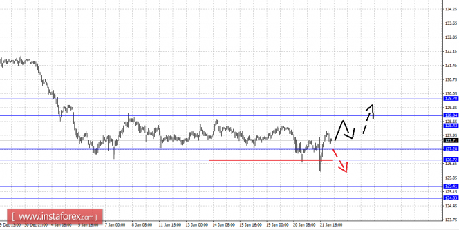 Краткосрочное восходящее движение возможно в коридоре 128.42 – 128.94, пробой последнего значения будет располагать к формированию восходящей структуры, в данном случае цель – 129.77.