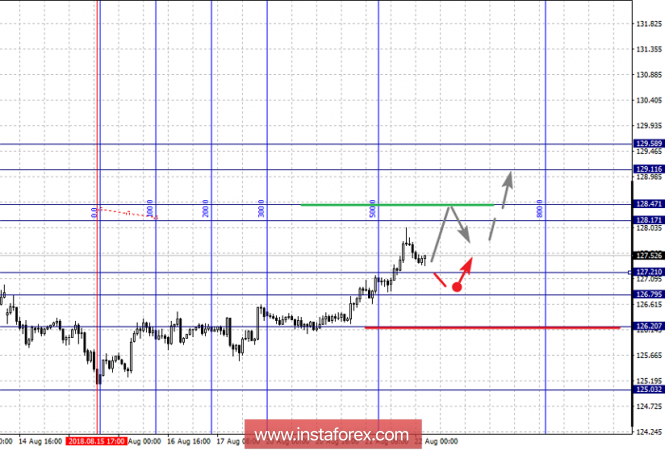 По паре Евро/Иена ключевыми уровнями в масштабе Н1 являются: 129.58, 129.11, 128.47, 128.17, 127.21, 126.79 и 126.20. Здесь мы следим за развитием восходящей структуры от 15 августа. Продолжение движения кверху возможно после прохода ценой шумового диапазона 128.17 – 128.47, в данном случае цель – 129.11. Потенциальным значением для верха считаем уровень 129.58, по достижении которого ожидаем уход в коррекцию.