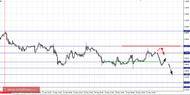Диапазон 0.9891 – 0.9917 является ключевой поддержкой для низа, его проход ценой будет располагать к развитию восходящей тенденции, в данном случае потенциальная цель – 0.9977.