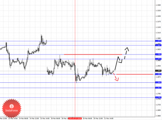 По паре Евро/Доллар важными уровнями являются: 1.3070, 1.3047, 1.2998, 1.2973, 1.2890, 1.2846, 1.2817 и 1.2765. Здесь продолжения развития восходящей структуры от 19 марта ожидаем после пробоя 1.2973, в данном случае цель 1.2998, в этом коридоре консолидация цены. Пробой уровня 1.2998 должен сопровождаться выраженным восходящим движением, здесь цель 1.3047. Потенциальным значением для верха считаем уровень 1.3070, по достижении которого ожидаем консолидацию. Продолжения движения книзу возможно после пробоя 1.2890, в данном случае первая потенциальная цель 1.2846, далее уровни остались без изменения.