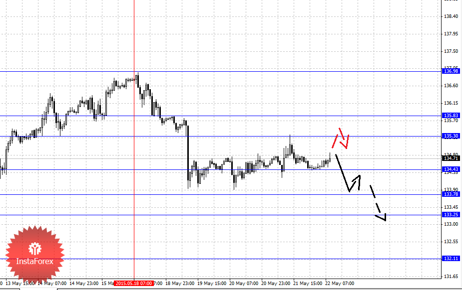 По паре Евро/Иена ключевыми уровнями в масштабе Н1 являются: 136.98, 135.83, 135.30, 134.43, 133.78, 133.25 и 132.11. Здесь мы следим за развитием нисходящей структуры от 18 мая. Продолжения движения книзу ожидаем после пробоя 134.43, в данном случае цель – 133.78, в коридоре 133.78 – 133.25 ожидаем консолидацию. Пробой уровня 133.25 позволит рассчитывать на движение к потенциальной цели – 132.11. Краткосрочное восходящее движение возможно в коридоре 135.30 – 135.83, пробой последнего значения будет располагать к развитию восходящей тенденции, здесь потенциальная цель – 136.98.