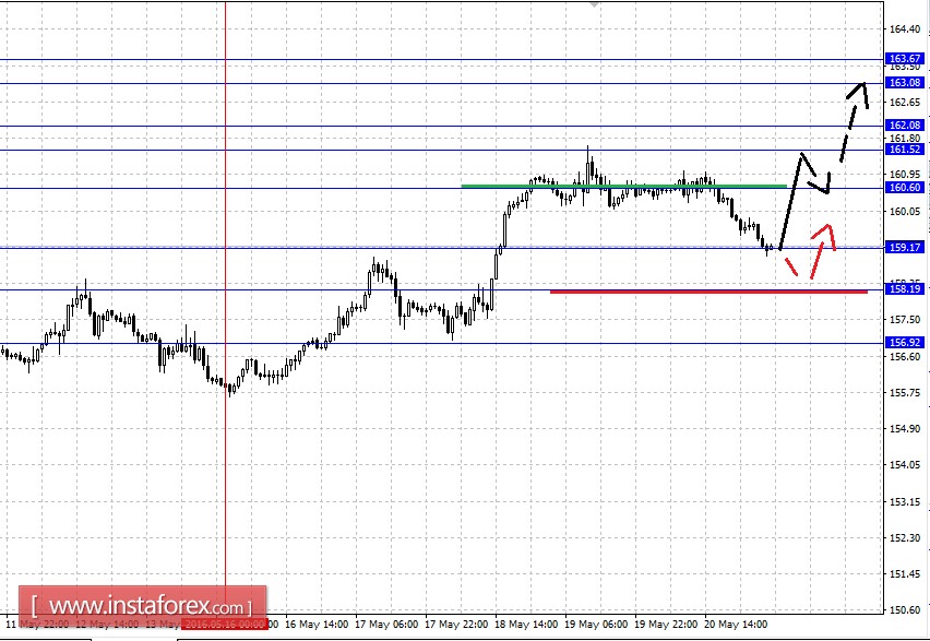 Краткосрочное нисходящее движение возможно в коридоре 159.17 – 158.19, пробой последнего значения будет располагать к развитию нисходящей структуры, в данном случае потенциальная цель – 156.92, до этого уровня ожидаем оформления потенциала для нисходящего цикла.