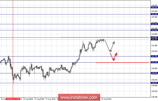 По паре Евро/Доллар ожидаем движение в коррекции от восходящего цикла 15 августа. По паре Фунт/Доллар продолжение движения кверху возможно после пробоя 1.2922, потенциал коррекции ограничен уровнем 1.2807. По паре Доллар/Франк ожидаем движение в коррекцию, уровень 0.9887 ключевая поддержка для нисходящего цикла. По паре Доллар/Иена следим за формированием нисходящей структуры от 21 августа. По паре Евро/Иена следим за развитием восходящей структуры от 15 августа, уровень 126.79 ключевая поддержка. По паре Фунт/Иена продолжения развития восходящей тенденции в масштабе Н1 ожидаем после пробоя 142.90.
