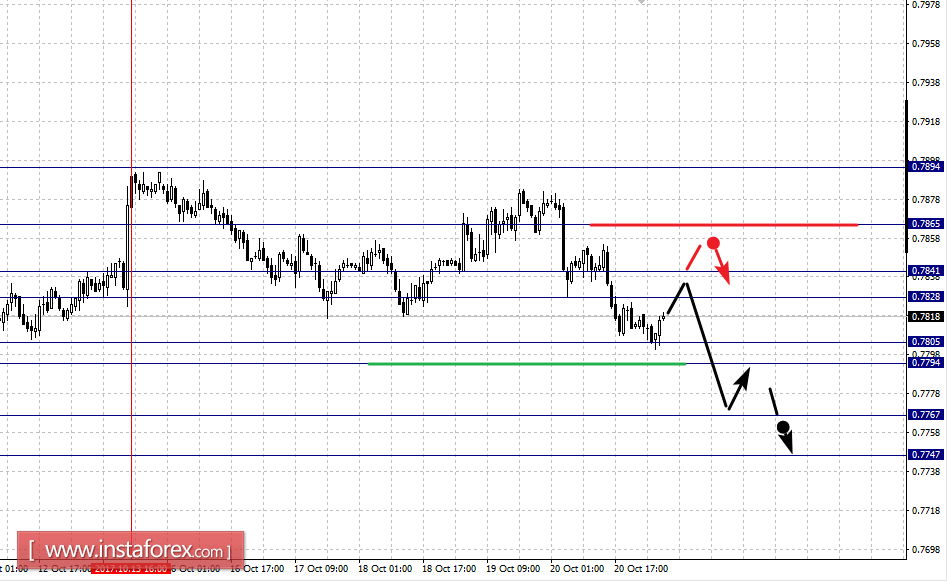 Краткосрочное восходящее движение возможно в коридоре 0.7828 – 0.7841, пробой последнего значения приведет к углубленной коррекции, здесь цель – 0.7865.