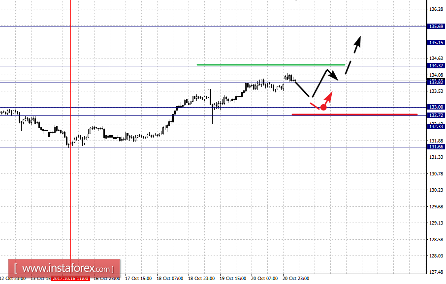 Краткосрочное нисходящее движение возможно в коридоре 133.00 – 132.72, пробой последнего значения приведет к углубленному движению, здесь цель – 132.33, этот уровень является ключевой поддержкой для низа.