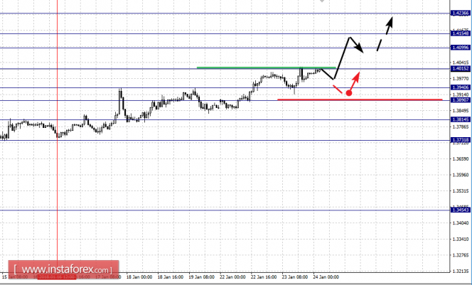 По паре Евро/Доллар продолжаем следить за локальной структурой для верха от 17 января, продолжения движения кверху ожидаем после пробоя 1.2395. По паре Фунт/Доллар следим за восходящей структурой от 16 января. По паре Доллар/Франк продолжения движения книзу ожидаем после пробоя 0.9562. По паре Доллар/Иена ожидаем движение к уровню 109.86. По паре Евро/Иена продолжения движения кверху ожидаем после прохода ценой шумового диапазона 136.16 – 136.46. По паре Фунт/Иена продолжения движения кверху ожидаем после пробоя 155.35.
