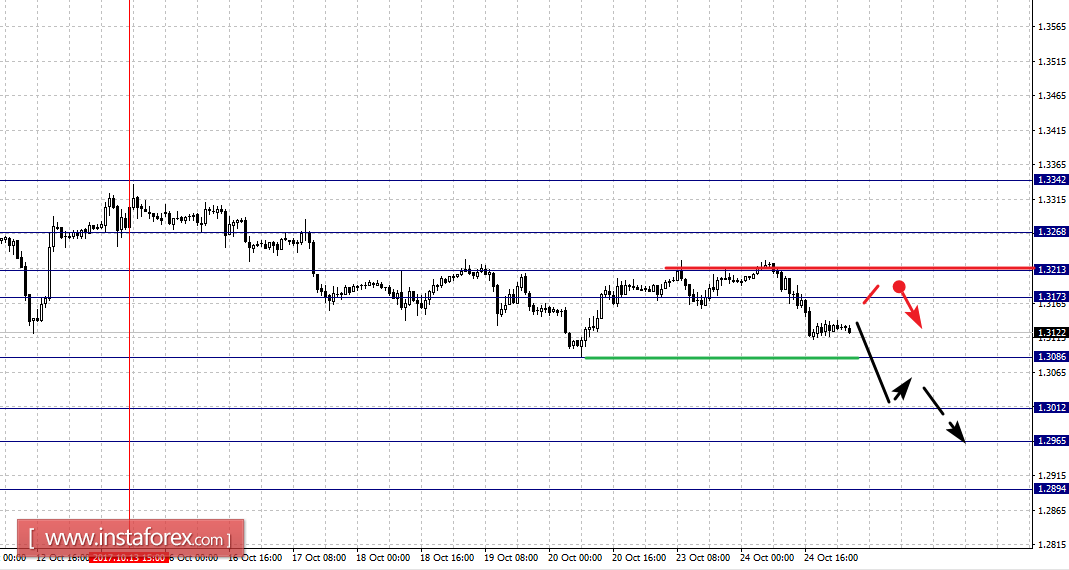 По паре Фунт/Доллар ключевыми уровнями в масштабе Н1 являются: 1.3268, 1.3213, 1.3173, 1.3086, 1.3012, 1.2965 и 1.2894. Здесь мы продолжаем следить за нисходящей структурой от 13 октября. Продолжения движения книзу ожидаем после пробоя 1.3086, в данном случае цель – 1.3012, в коридоре 1.3012 – 1.2965 ожидаем краткосрочное движение книзу, а также консолидацию. Потенциальным значением для нисходящей структуры считаем уровень 1.2894, от которого ожидаем откат кверху.