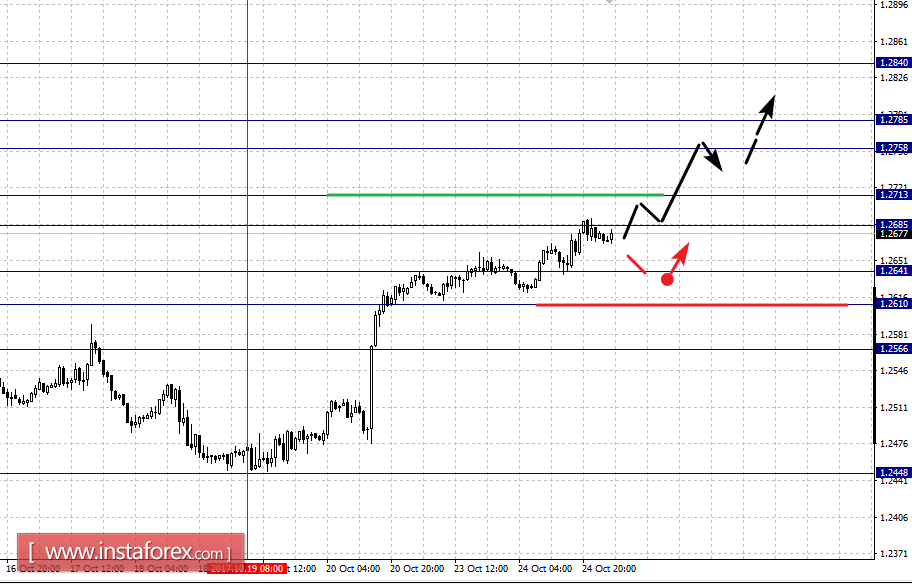 По паре Евро/Доллар ключевыми уровнями в масштабе Н1 являются: 1.1856, 1.1818, 1.1793, 1.1774, 1.1746, 1.1726, 1.1711 и 1.1669. Здесь мы продолжаем следить за формированием локальной нисходящей структуры от 19 октября. Продолжения движения книзу ожидаем после пробоя 1.1746, в данном случае цель – 1.1726, возле этого уровня консолидация. Проход ценой шумового диапазона 1.1726 – 1.1711 должен сопровождаться выраженным движением книзу, здесь цель – 1.1669, от которой ожидаем откат кверху.