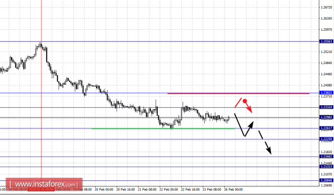 По паре Евро/Доллар ключевыми уровнями в масштабе Н1 являются: 1.2382, 1.2332, 1.2298, 1.2261, 1.2225, 1.2166, 1.2131 и 1.2084. Здесь мы следим за развитием нисходящей структуры от 16 февраля, на текущий момент цена находится в коррекции. Краткосрочное нисходящее движение ожидаем в коридоре 1.2261 – 1.2225, пробой последнего значения должен сопровождаться выраженным движением к уровню 1.2166, в коридоре 1.2166 – 1.2131 консолидация. Потенциальным значением для нисходящего движения считаем уровень 1.2084, по достижении которого ожидаем откат кверху.