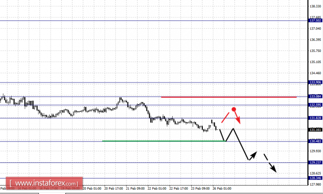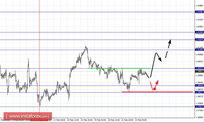 По паре Евро/Доллар цена находится в зоне коррекции от нисходящего движения, уровень 1.2382 является ключевой поддержкой. По паре Фунт/Доллар возобновления восходящего движения ожидаем после пробоя 1.4002. По паре Доллар/Франк продолжения развития восходящей структуры от 16 февраля ожидаем после пробоя 0.9390, на текущий момент цена находится в зоне коррекции. По паре Доллар/Иена развития восходящей структуры от 16 февраля ожидаем после пробоя 107.42. По паре Евро/Иена после достижения уровня 130.48 ожидаем движение к 129.25. По паре Фунт/Иена ожидаем движение к уровню 147.11.