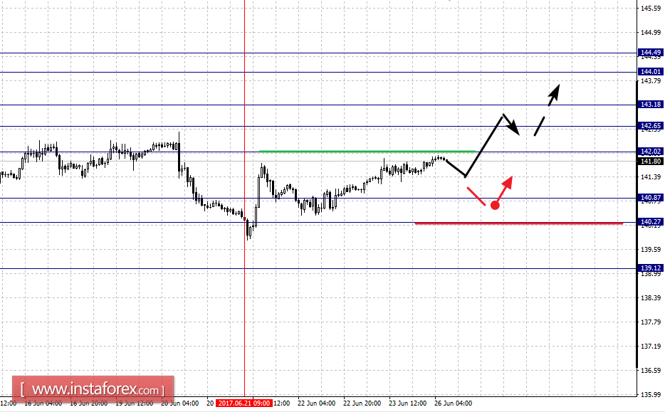 Краткосрочное нисходящее движение возможно в коридоре 140.87 – 140.04, пробой последнего значения будет располагать к развитию нисходящей структуры от 20 июня.