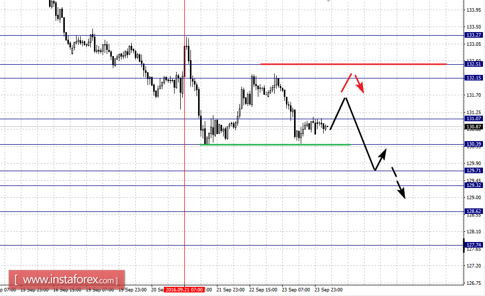 По паре Евро/Доллар мы уточнили цели для восходящей структуры от 21 сентября. По паре Фунт/Доллар следим за нисходящей структурой от 22 сентября. По паре Доллар/Франк следим за формированием среднесрочной нисходящей структуры от 19 сентября. По паре Доллар/Иена продолжаем следить за локальной нисходящей структурой от 21 сентября. По паре Евро/Иена ситуация находится в равновесном состоянии. По паре Фунт/Иена продолжения движения книзу ожидаем после пробоя 130.39.