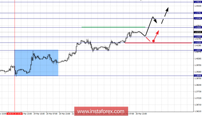 По паре Фунт/Доллар ключевыми уровнями в масштабе Н1 являются 1.4461, 1.4378, 1.4336, 1.4266, 1.4195, 1.4150 и 1.4090. Здесь мы продолжаем следить за локальным восходящим циклом от 16 марта. Продолжения движения кверху ожидаем после пробоя 1.4266, в данном случае цель 1.4336, в коридоре 1.4336 – 1.4378 консолидация. Потенциальным значением для верха считаем уровень 1.4461, по достижении которого ожидаем откат книзу.