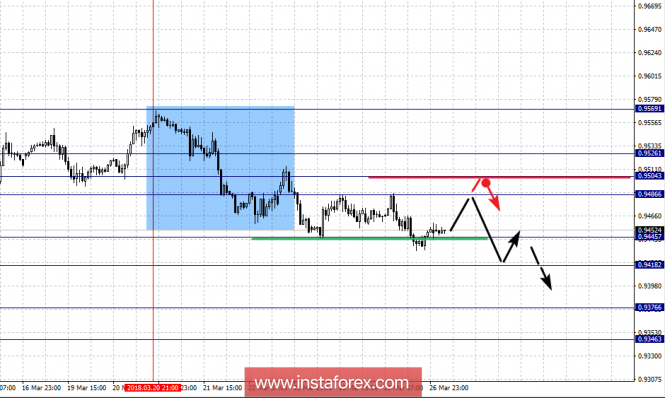 Краткосрочное восходящее движение возможно в коридоре 0.9486 – 0.9504, пробой последнего значения приведет к углубленной коррекции, здесь цель – 0.9526, этот уровень является ключевой поддержкой для нисходящей структуры.