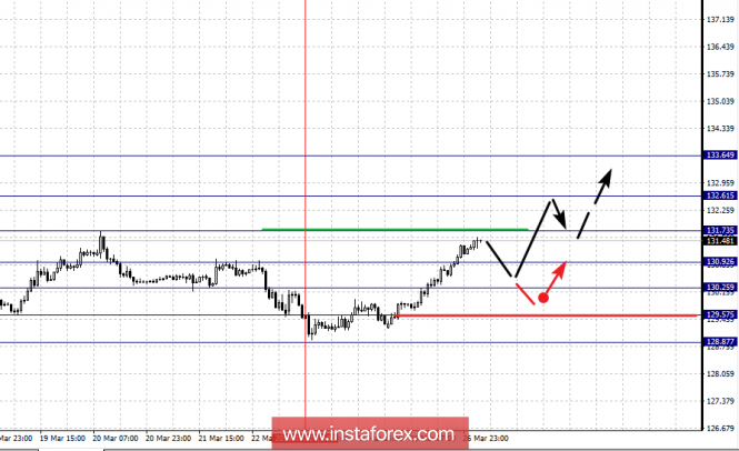 Краткосрочное нисходящее движение возможно в коридоре 130.92 – 130.25, пробой последнего значения приведет к углубленной коррекции, здесь цель – 129.57, этот уровень является ключевой поддержкой для восходящей структуры от 22 марта.