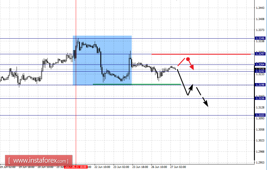 Краткосрочное нисходящее движение возможно в коридоре 1.1164 – 1.1141, пробой последнего значения продолжит развитие нисходящей структуры от 14 июня, в данном случае первая цель – 1.1112, в коридоре 1.1112 – 1.1085 ожидаем краткосрочное нисходящее движение.