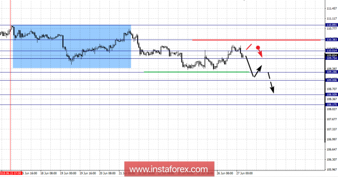 Консолидированное движение возможно в коридоре 109.75 – 110.01, пробой последнего значения приведет к углубленной коррекции, здесь цель – 110.38, этот уровень является ключевой поддержкой для нисходящей структуры от 15 июня.