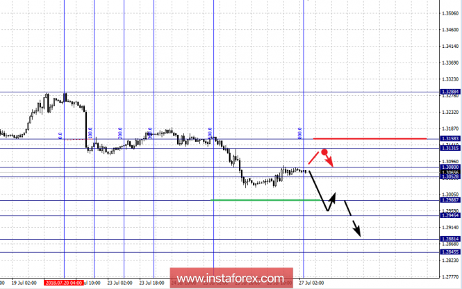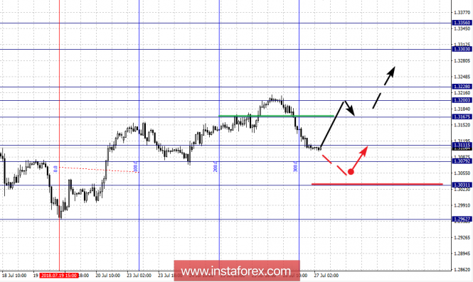 Краткосрочное нисходящее движение возможно в коридоре 1.3111 – 1.3079, пробой последнего значения приведет к формированию нисходящей структуры, в данном случае цель – 1.3031.