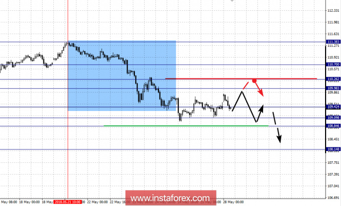 Краткосрочное восходящее движение возможно в коридоре 109.98 – 110.26, пробой последнего значения приведет к углубленной коррекции, здесь цель – 110.70, этот уровень является ключевой поддержкой для нисходящей структуры от 21 мая.