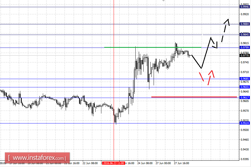 Краткосрочное нисходящее движение возможно в коридоре 0.9685 – 0.9655, пробой последнего значения приведет к затяжной коррекции, здесь цель – 0.9617, этот уровень является ключевой поддержкой для верха.