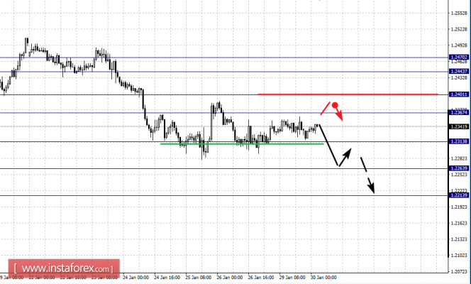 По паре Канадский доллар/Доллар ключевыми уровнями в масштабе Н1 являются: 1.2443, 1.2401, 1.2367, 1.2313, 1.2263 и 1.2213. Здесь мы продолжаем следить за нисходящей структурой от 11 января в качестве основной тенденции. Продолжения движения книзу ожидаем после пробоя уровня 1.2313, в данном случае цель – 1.2263, возле этого уровня консолидация цены. Потенциальным значением для низа считаем уровень 1.2213, по достижении которого ожидаем откат кверху.