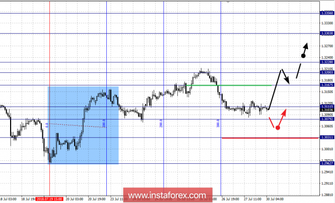 Краткосрочное нисходящее движение возможно в коридоре 1.3111 – 1.3079, пробой последнего значения приведет к формированию нисходящей структуры, в данном случае цель – 1.3031.