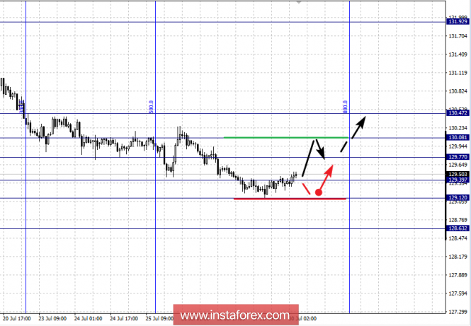 Краткосрочное восходящее движение возможно в коридоре 129.77 – 130.08, пробой последнего значения приведет к углубленной коррекции и формированию начальных условий для верха, в данном случае потенциальная цель – 130.47.