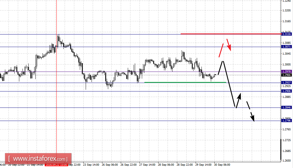 По паре Евро/Доллар цена продолжает находиться в зоне начальных условий от 21 сентября, продолжения движения кверху ожидаем после пробоя 1.1245. По паре Фунт/Доллар пока следим за развитием нисходящей структуры от 22 сентября. По паре Доллар/Франк следим за нисходящей структурой от 19 сентября, продолжения движения книзу ожидаем после пробоя 0.9647. По паре Доллар/Иена цена формирует достаточно выраженный потенциал для верха от 27 сентября. По паре Евро/Иена продолжаем следить за восходящей структурой от 21 сентября. По паре Фунт/Иена цена находится в зоне начальных условий от восходящей структуры 27 сентября.