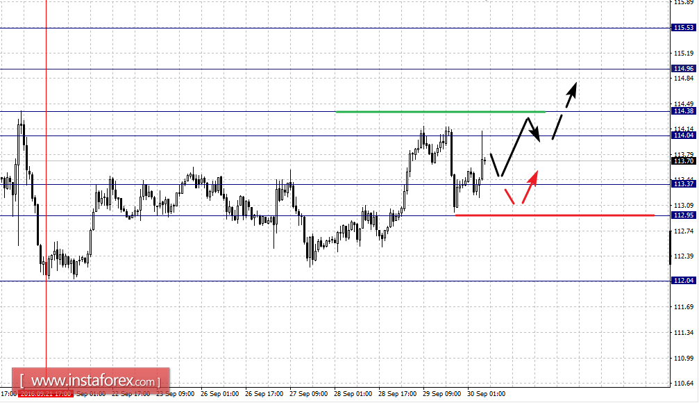 Краткосрочное нисходящее движение возможно в диапазоне 113.37 – 112.95, отсюда высока вероятность разворота кверху, пробой уровня 112.95 будет располагать к развитию нисходящей структуры, в данном случае потенциальная цель – 112.04.