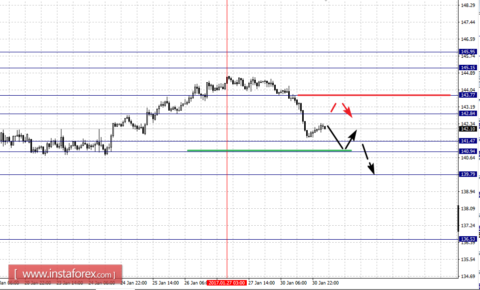 Краткосрочное восходящее движение возможно в коридоре 142.84 – 143.77, пробой последнего значения будет располагать к развитию восходящей структуры, здесь цель – 145.15. Потенциальным значением для верха считаем уровень 145.95, до которого ожидаем формирование начальных условий для восходящего цикла.