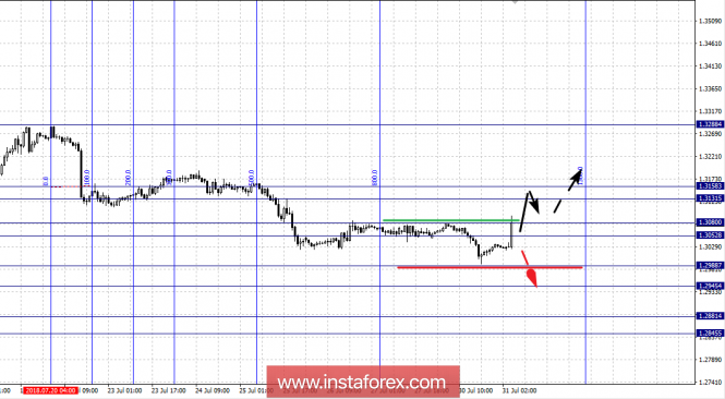Краткосрочное нисходящее движение возможно в коридоре 1.3111 – 1.3079, пробой последнего значения приведет к формированию нисходящей структуры, в данном случае цель – 1.3031.