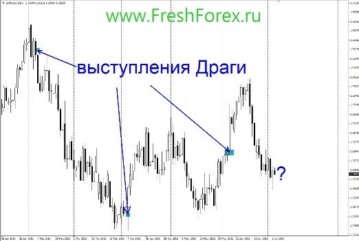 "Драги нужно будет удивить. а не повторять пассивное (и при этом весьма воинственное) выступление на последнем заседании ЕЦБ, которое придало силы евро, что на этот раз стало бы болезненным," - сказал Джон Дж. Харди, валютный стратег Saxo Bank.