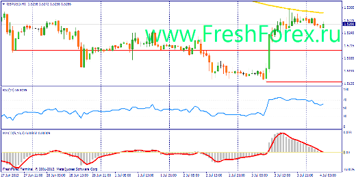 Пара британский фунт/доллар США выросла после выхода индекса менеджеров по снабжению /PMI/ для сферы услуг Великобритании, который в июне составил 56.9, тогда как прогнозировалось значение индекса 54.2. Такие данные подтолкнули пару фунт/доллар к укреплению выше отметки 1.5250.