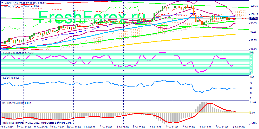GBP/USD потерял импульс и поселился в диапазоне 1.5240 – 1.5300. Рынки США закрыты сегодня, перед праздником 3 июля фунт достиг максимума 1.5302, но нашлись продавцы и отправили его обратно ниже 1.5300, последние часы он консолидируется в области 1.5250/1.5290. Что касается технических уровней, ближайшими сопротивлениями являются 1.5300/05 (вчерашний максимум / психологический уровень / SMA 200-часовая) и 1.5320 (10-дневная SMA). С другой стороны, поддержка ожидается на 1.5210 (100-часовая SMA) и 1.5130 (вчерашний минимум).