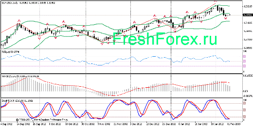 Промежуточное сопротивление - $1.3430 (максимум 8 февраля). В случае преодоления $1.3490/$1.3500 (линия сопротивления от 1 февраля) быки нацелятся к $1.3580/$1.3600 (максимумы 6-7 февраля). Ниже поддержек $1.3350/45 (минимумы 25 января и 8 февраля) и $1.3300 (канальная линия поддержки от 1 февраля) более серьезная поддержка находится на $1.3270/56 (минимум 16 января и 61.8% Фибо роста с начала года).
