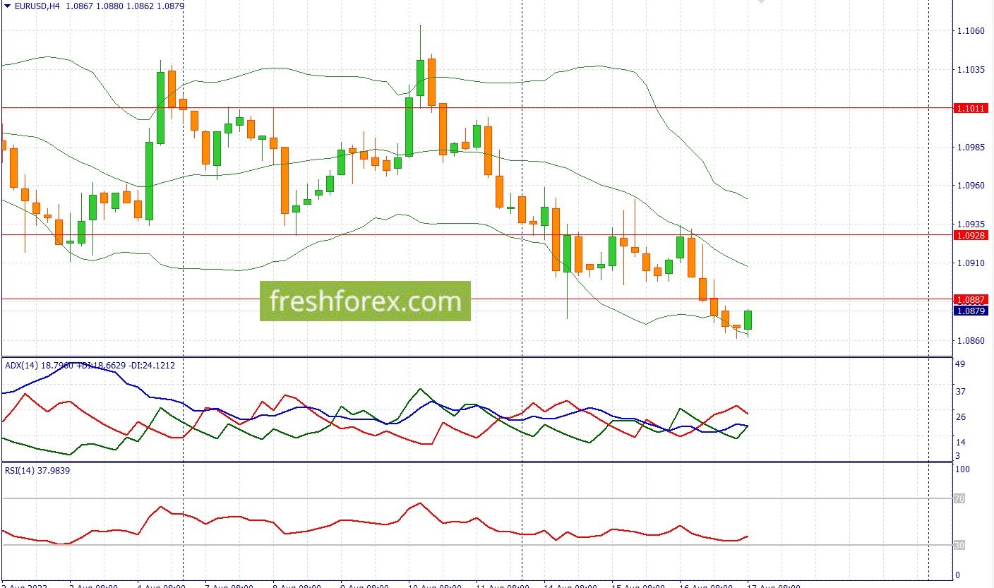 17 августа 2023, EUR/USD. Рост доходности трежерис позитивен для доллара.