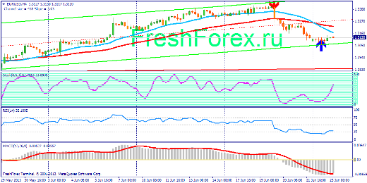 EUR/USD в понедельник провел свой первый позитивный день в течение последних четырех сессий и после потери около 300 пунктов с максимума 19 июня на 1.3415, пара сумела восстановиться со вчерашнего минимума и закрыться 0.20% на 1.3115. Ситуация изменилась, на слегка бычью на 1-часовом графике.