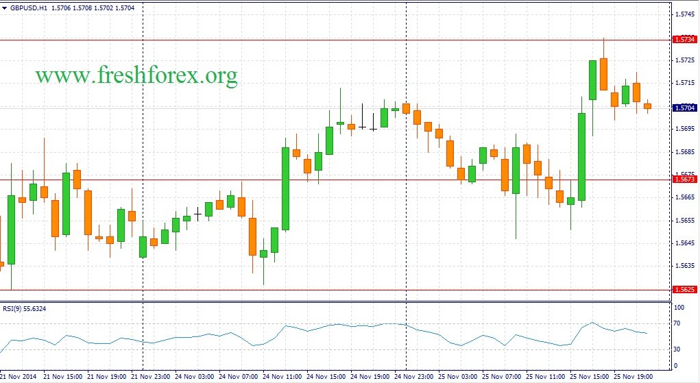Стоит отметить, что два индикатора потребительской уверенности от Conference Board и института Мичигана в ноябре показали совершенно противоположную динамику – первый значительно снизился, показав минимальное значение за последние 4 месяца, при этом второй показатель установил 7 летний максимум. Парадоксы макроэкономической статистики из Штатов, иначе сказать нельзя. В итоге, торговые сутки в паре фунт/доллар завершились на отметке 1.5705.