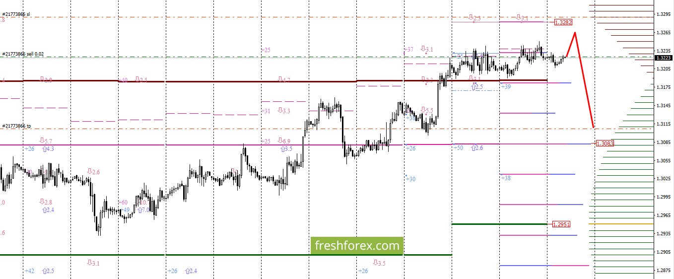 Торговые решения: Sell 1.3250 – 1.3273 take profit 1.3105 – 1.3083.